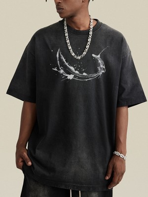 T-shirt unisexe oversize en coton lavé personnalisé | Motif épée imprimé | 270 g/m²