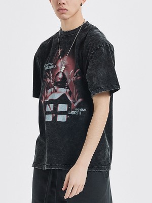 T-shirts personnalisés d'été pour hommes, coupes asymétriques, délavage à l'acide, style vintage, en coton foncé