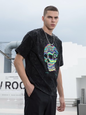 Fournisseur de t-shirts squelette personnalisés par transfert thermique, 100 % coton, délavage à l'acide, coupe oversize pour hommes
